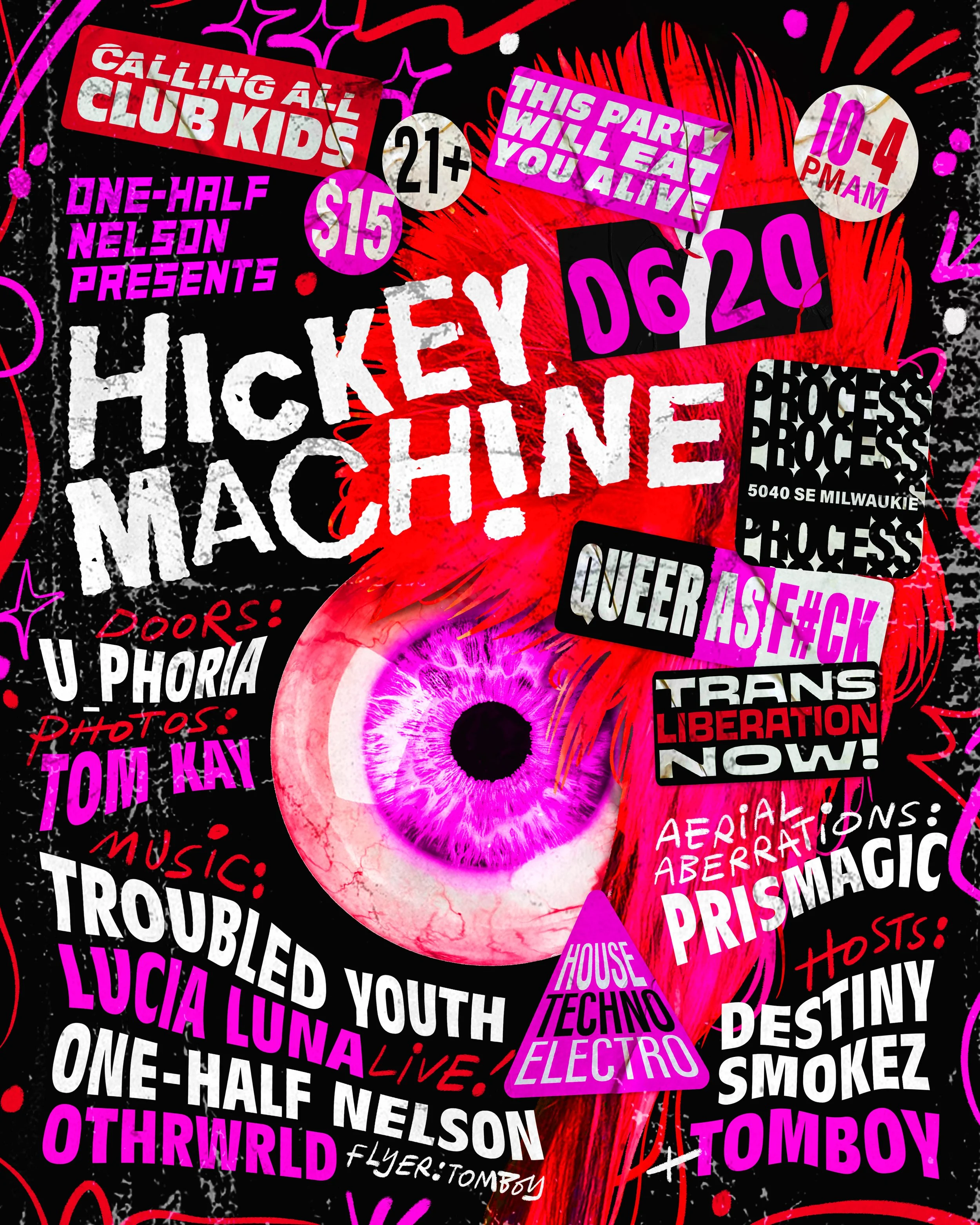 Hickey Machine is a monthly party gestated by nightlife legend One-Half NelSon. She describes it best herself: